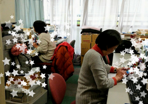 先程、NPO礎の石孤児院・東京オフィスにて、 それぞれ!コツコツ デスクワ━クに勤しむ、吉田さんと 吉野さん☆ Megumi