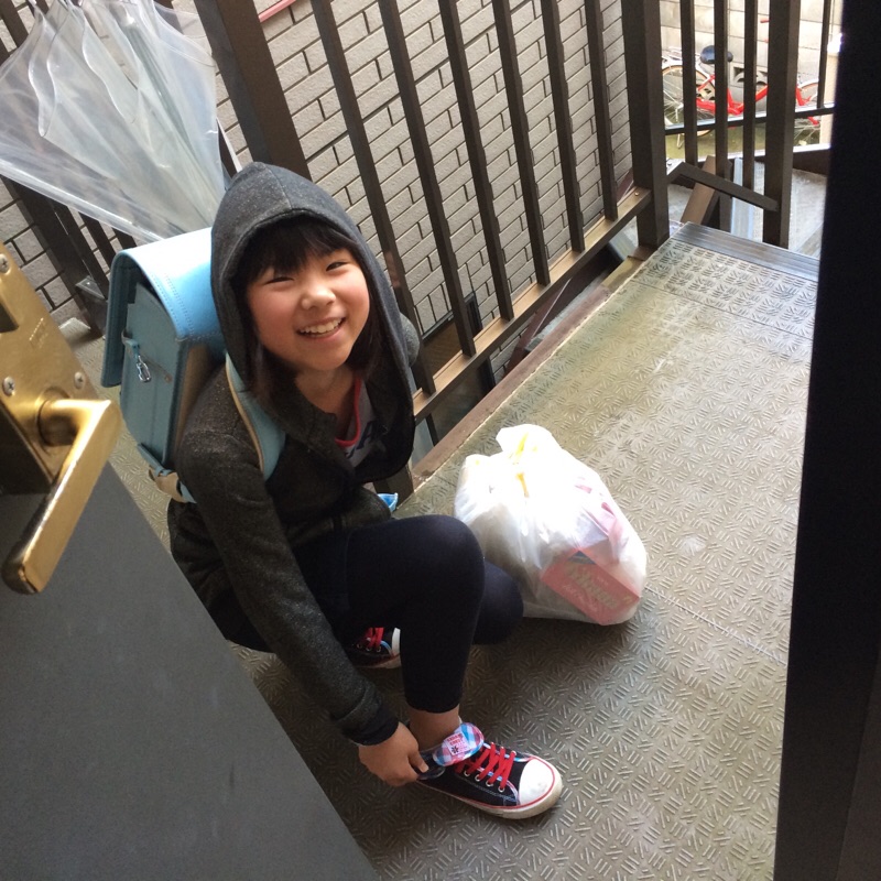 上着のチャックが出来ないーと助けを求めてきた息子です^^; とにかく今日はお友達との待ち合わせに間に合ってよかった!まじきな