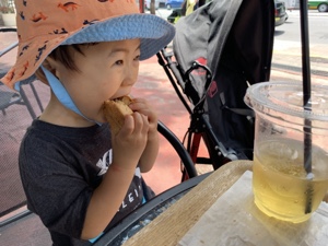 パンを食べて、今はベビーカーで寝ているーくです^_^