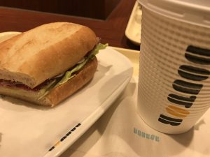ドトールでランチ〜こんでたけど、座れたあ〜少し寒いけど感謝^_^L’abeilleゆみ