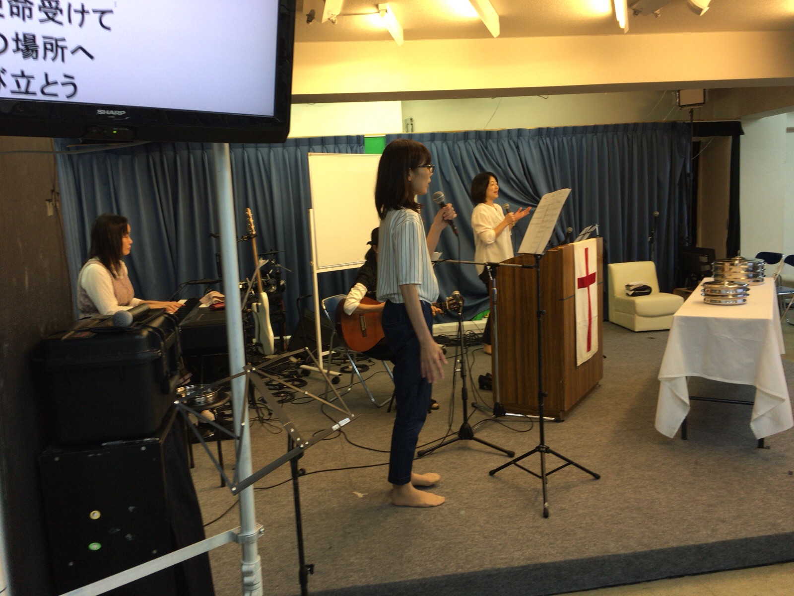 賛美を導くのは真境名さんです。