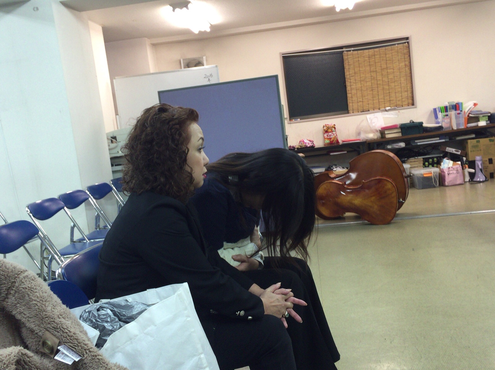 出番の前にお祈りしています。エルサレムのお二人。