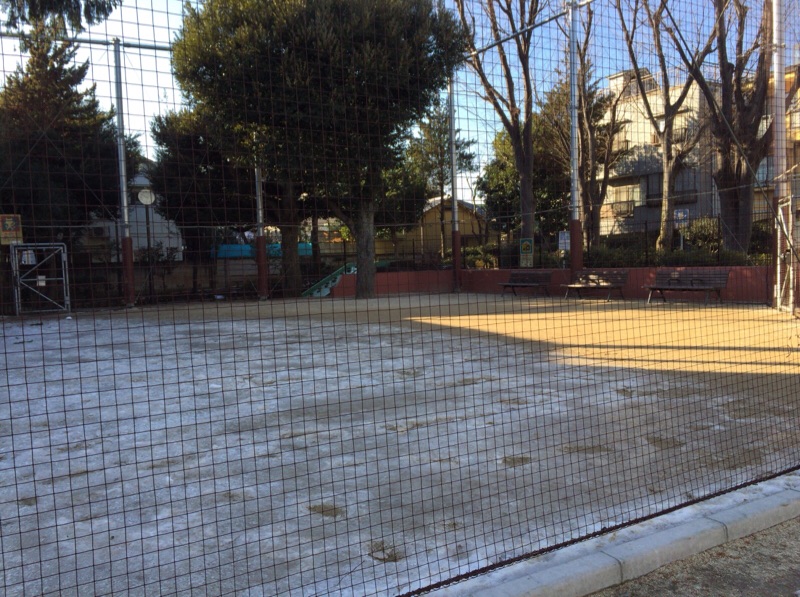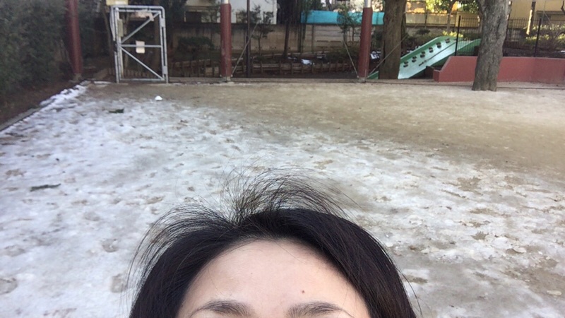 広場の半分が、凍っているようにみえたので確認してみると、ツルツルではなくて、ザラザラと・凍っていました。