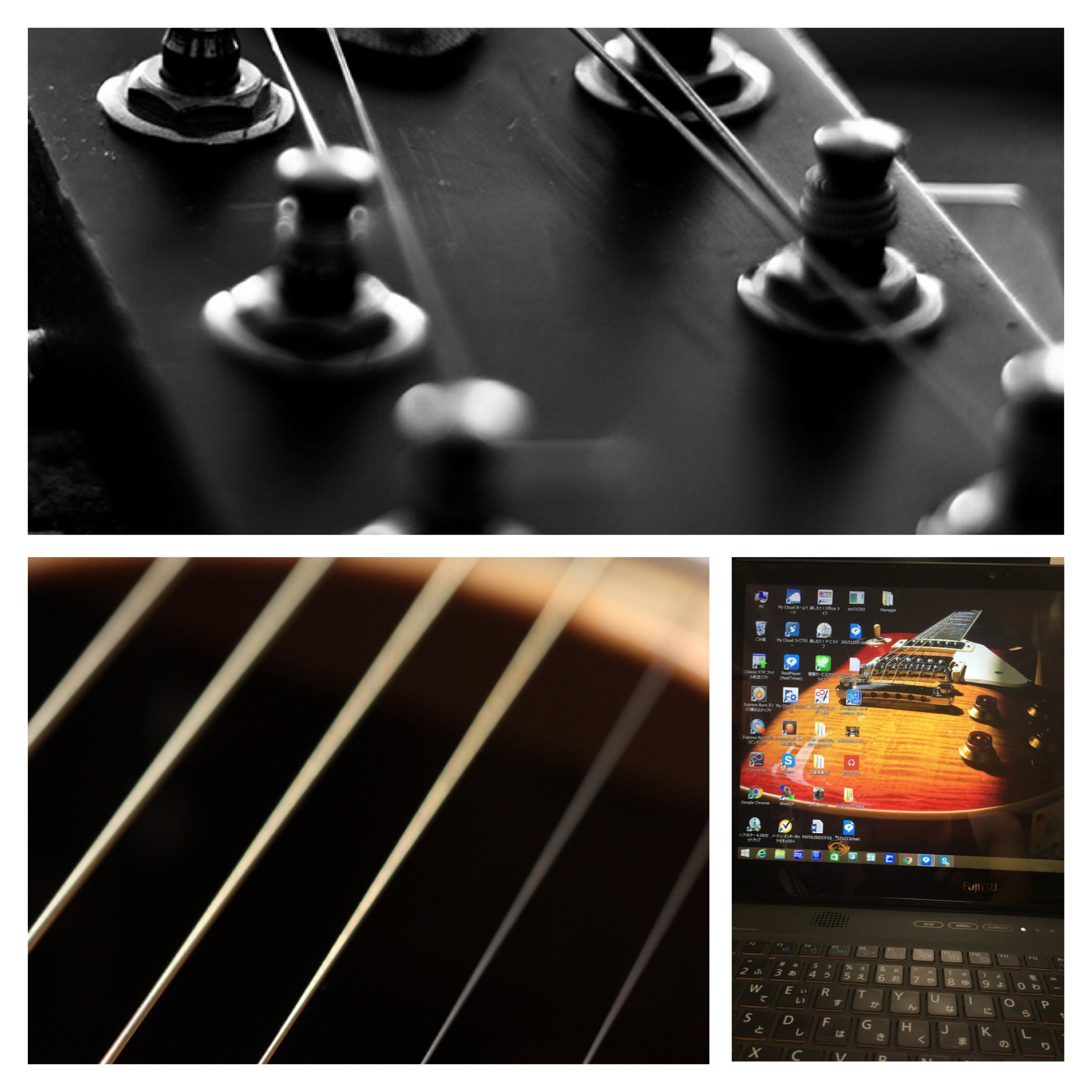 上と左下:携帯の待ち受け画面 右下:パソコンのデスクトップ画面 好きなだけで技術が追いついていきませんが やっぱり私はギターが好き! PATOLIS ダニエル