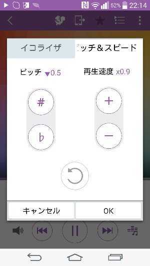 練習するのに、ミュージックのアプリで曲を流しているとき、ピッチとスピードを変える機能が付いているのを発見しました。これは、とっても便利。早速、来週のコンサートで使います。
