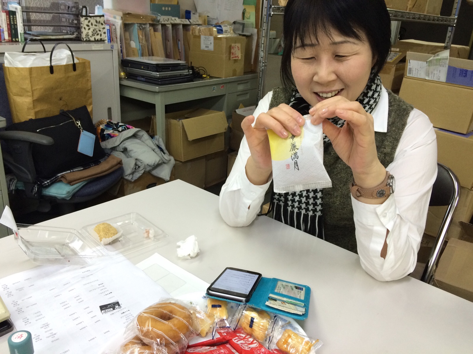 残りのおはぎ、大野さんにあげました。大野さん、甘いおはぎ食べて、しょっぱいテーブルの煎餅食べて、、ずっと食べれそう。 ヒソプ ミカエル