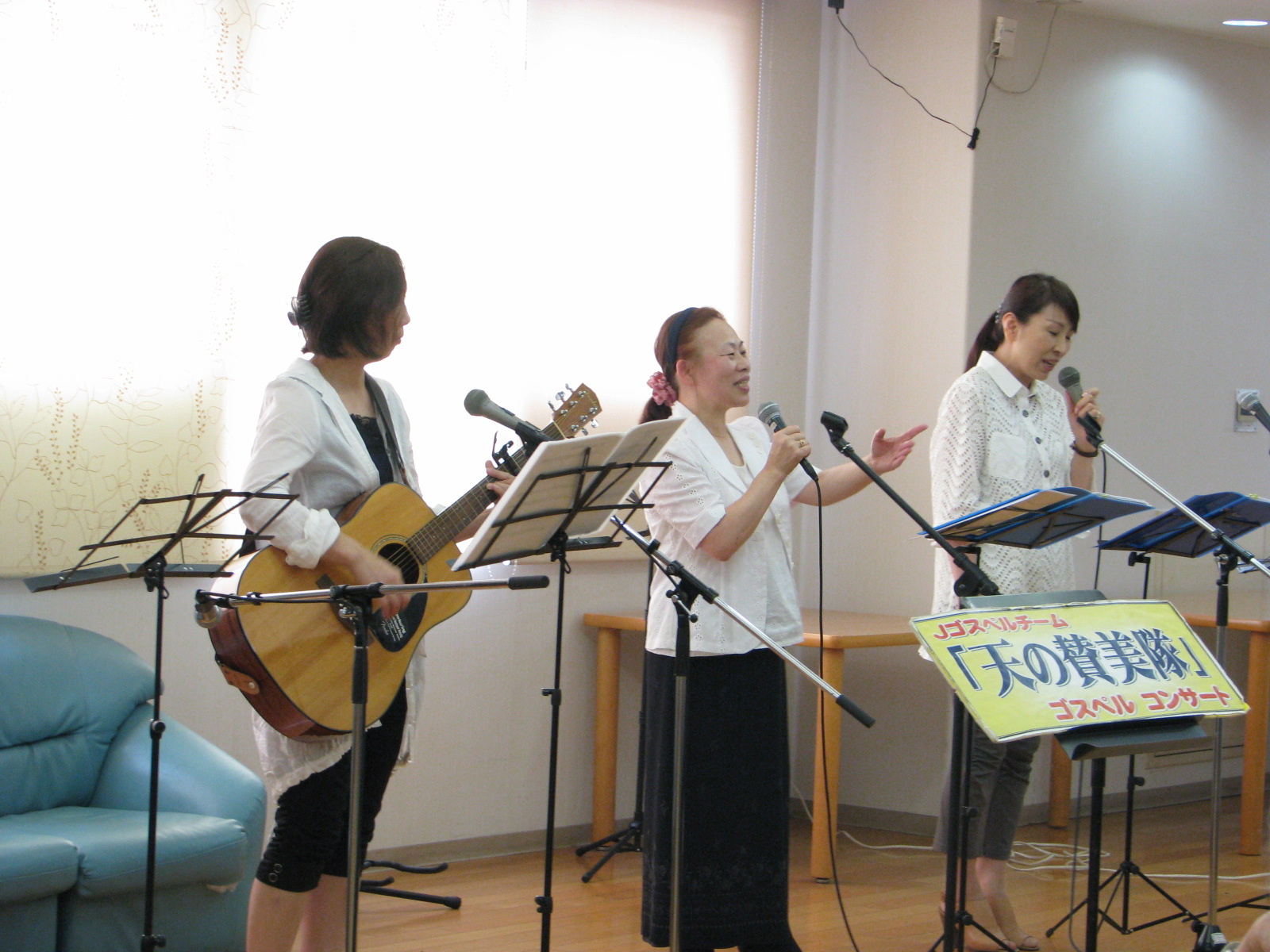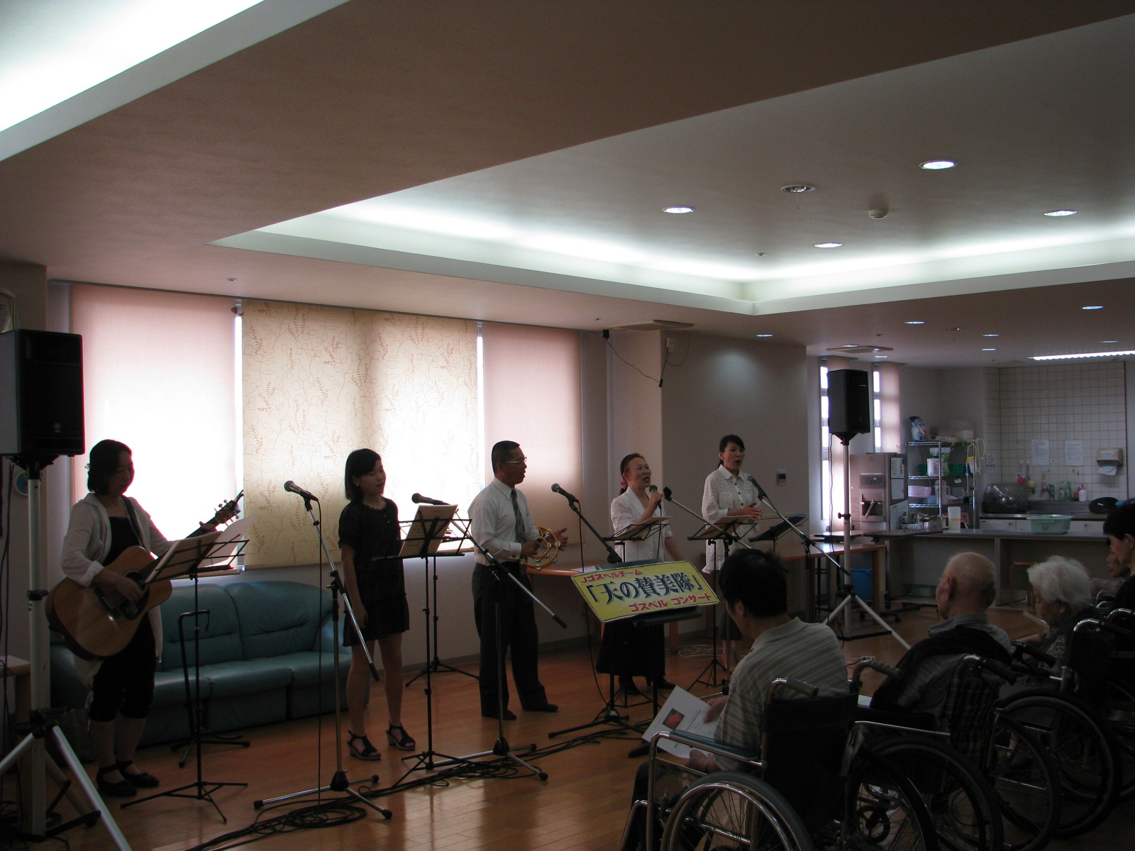 14日に、北九州市戸畑区にある「介護老人保健施設・あやめの里」で、一年半振りにコンサートをさせていただきました。「グレイス」のめぐみちゃんも出演しました。