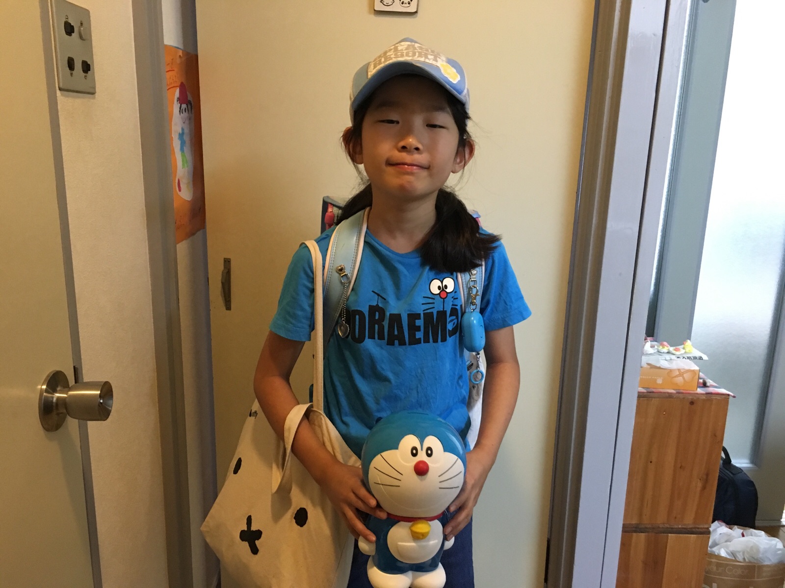 お気に入りのドラTで今日も元気に登校。 行ってらっしゃい〜。 子どもキブツ シオン