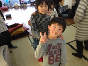 お姉ちゃんの賛美ちゃんの後押し?で賛美〈正確にはピース〉するもうひとりのダビくん。