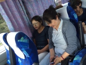 関西バスの中では礼拝が終わり祈り会がスタートしています。john