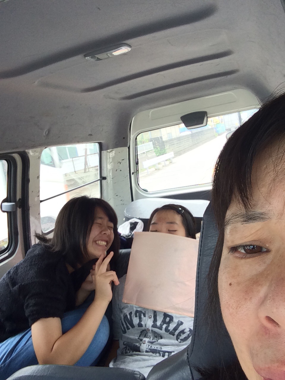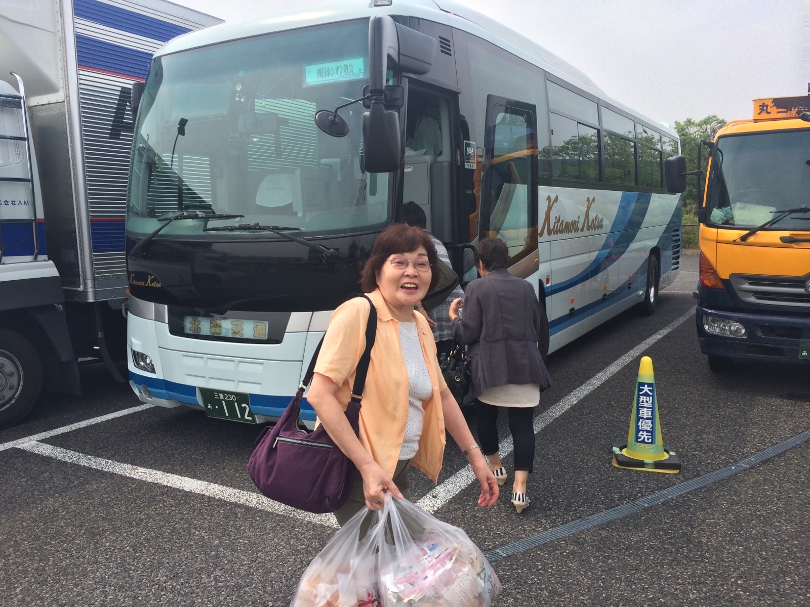 ドライブイン出発します。あれっ、もうお土産いっぱい? 四日市シオン教会