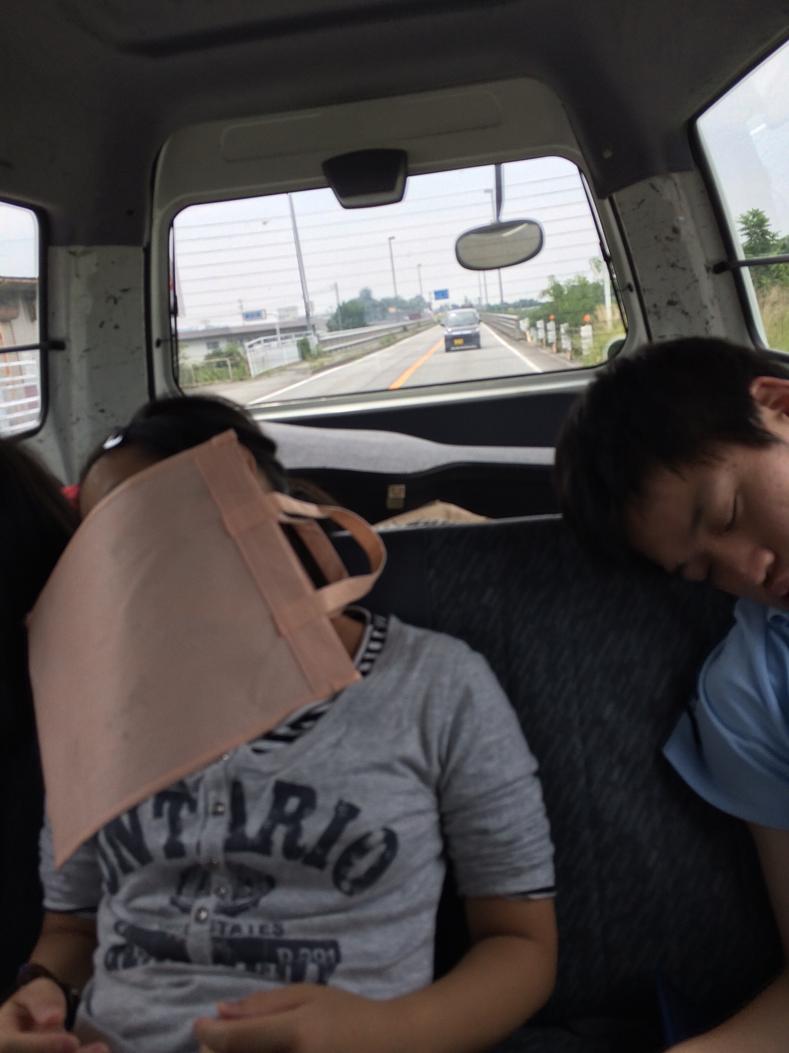 向かってます! 遅くまであーだこーだの用意大会で、いつも道中はこう。 起きてたら、もっと楽しいのに! 甲府教会 ノア シオン