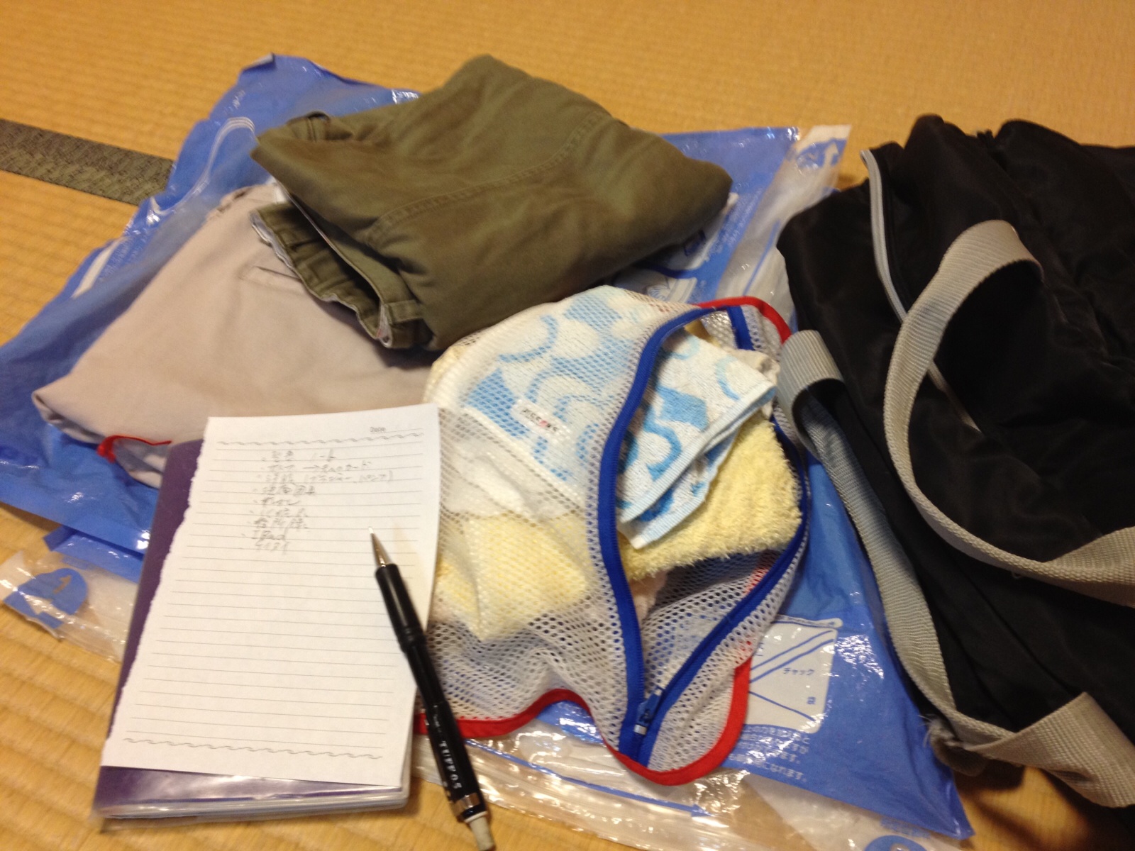 四日間留守にする主婦の、 目まぐるしい一日でした。 さあ、荷物の準備…… メモを見つつ〜! 四日市シオン教会
