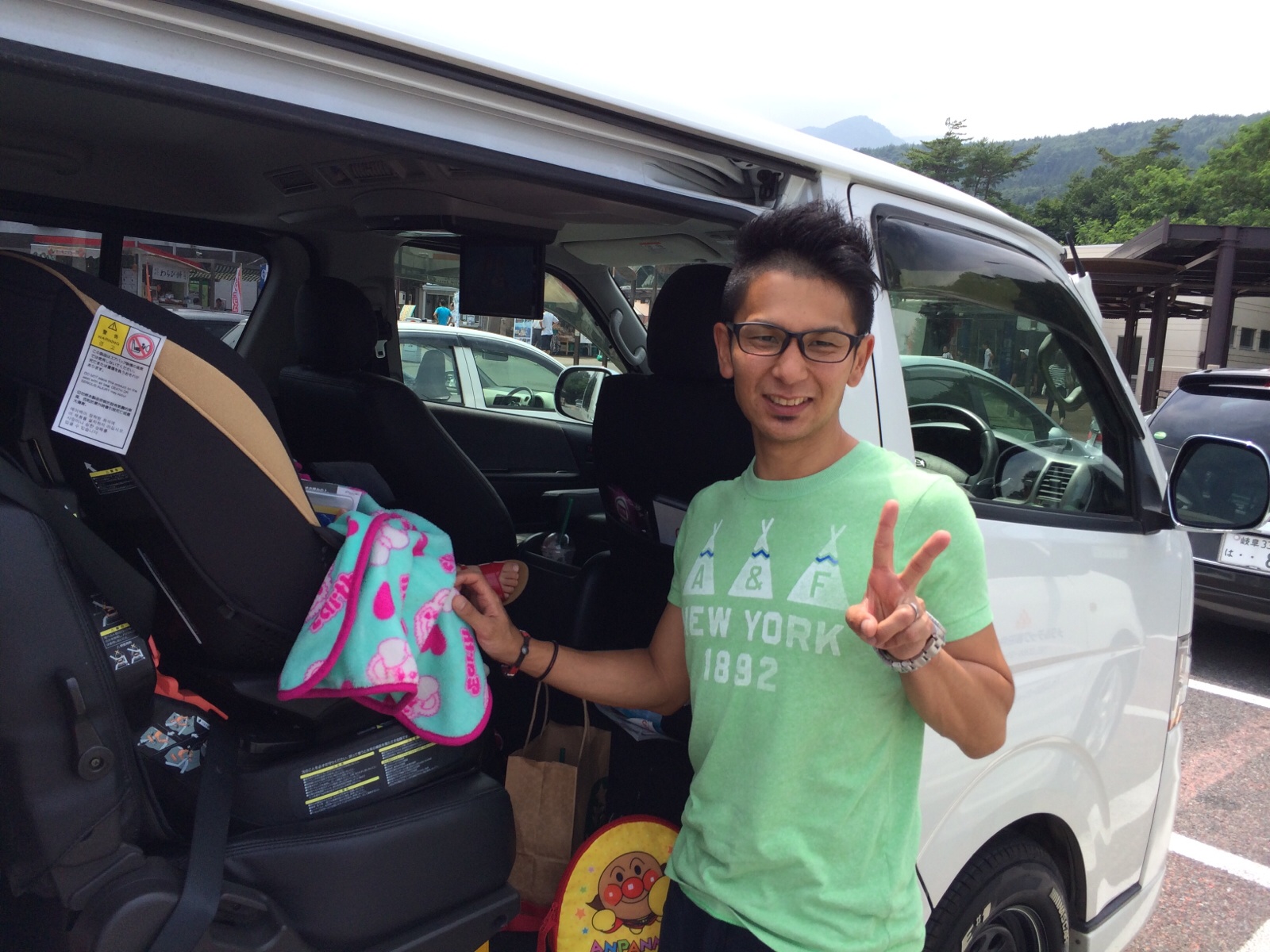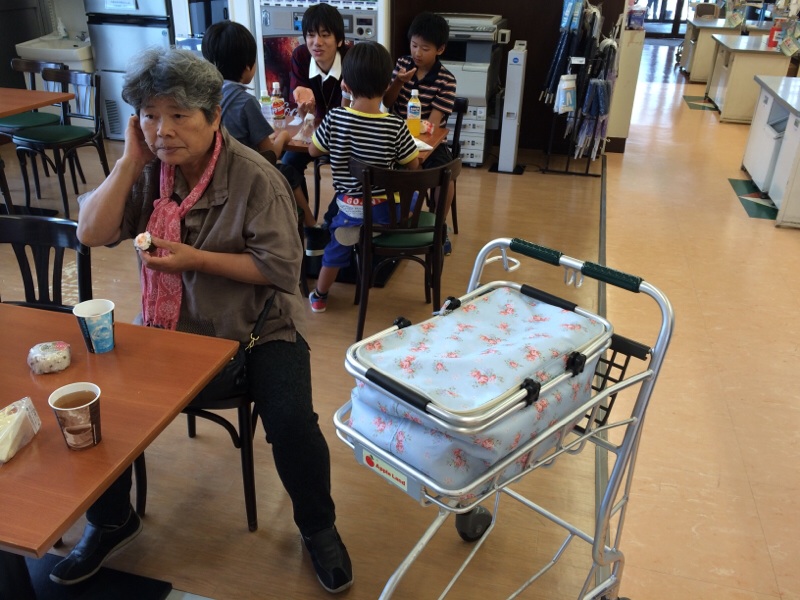 白馬駅付近のアップルランドというスーパーに来ました。ホテルでの飲み物、おやつを買い出し、軽めの昼食を取り、いよいよ、白馬キャンプへ。 名古屋