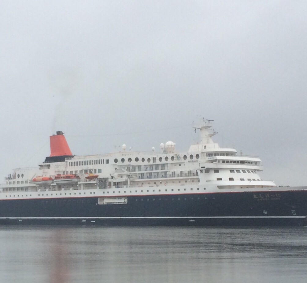 ゴールデンウイーク中、大型船が入港しています。きょうは、にっぽん丸号が入港しました。買い物のついでに港に寄ってみました。 下船した方々は寒くてビックリだと思います。