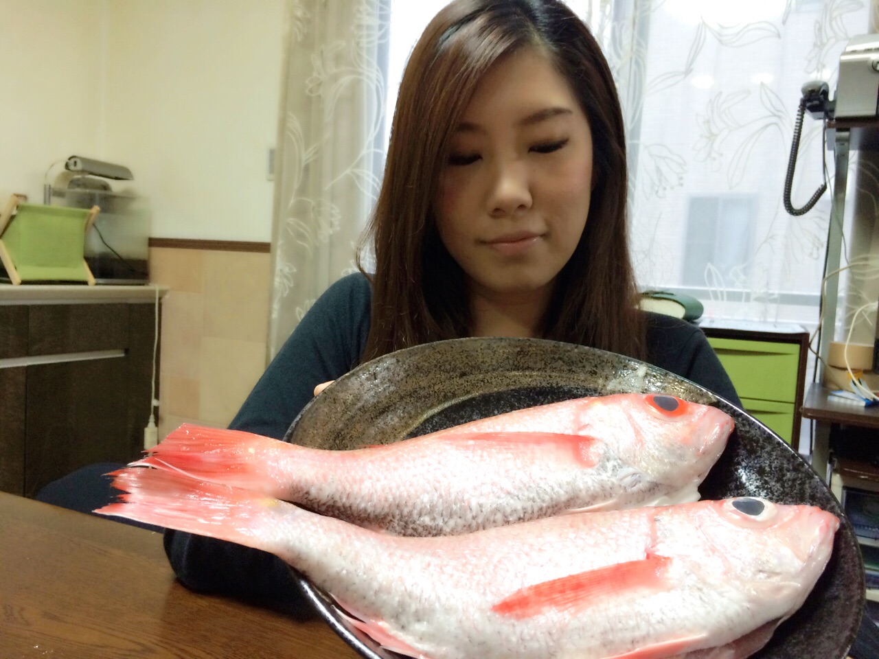 赤むつ(のどぐろ)をいただきました〜〜(^^)vイェイ お父さんのお友達が釣ってきてくれました! 今晩のごちそうです♡ 四日市 A