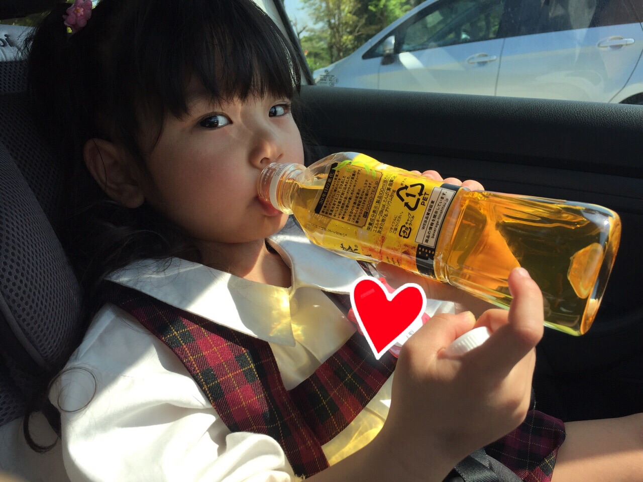 幼稚園から帰ってきました(*˘︶˘*) 最近は暑くなってきたので、大好きなレモンティーを持ってお迎えに行きます♫