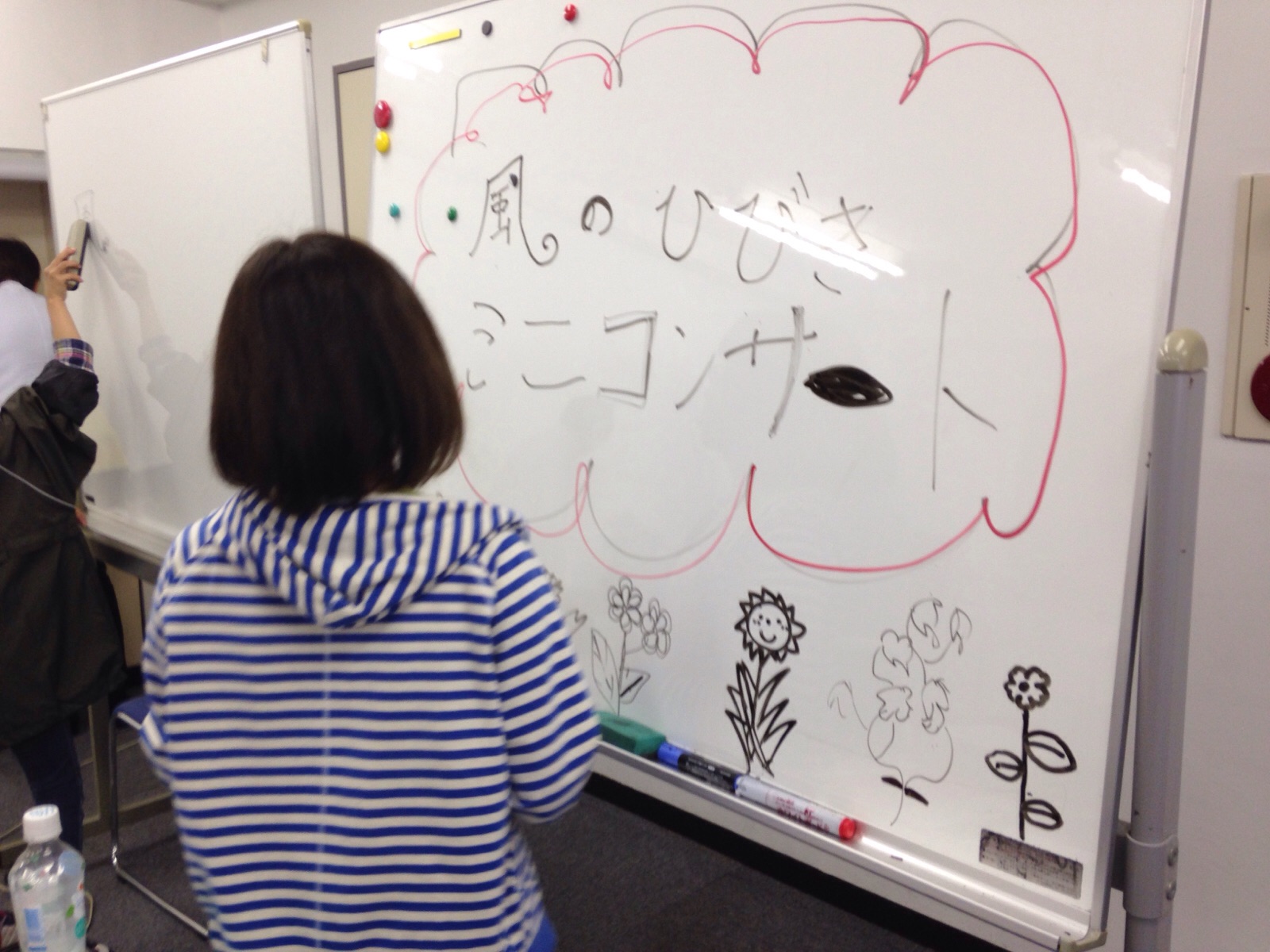 礼拝後に風のひびきミニコンサートを行いました。いつも子どもたちが看板を書いてくれます。(^o^)/ いのちの冠福岡教会