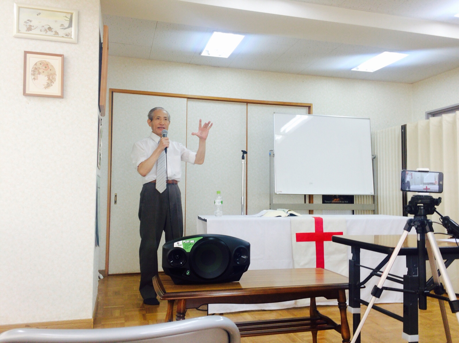 第二礼拝のメッセージをする父。 ヨシュアさん。今日も力強く! 大和 奈緒美