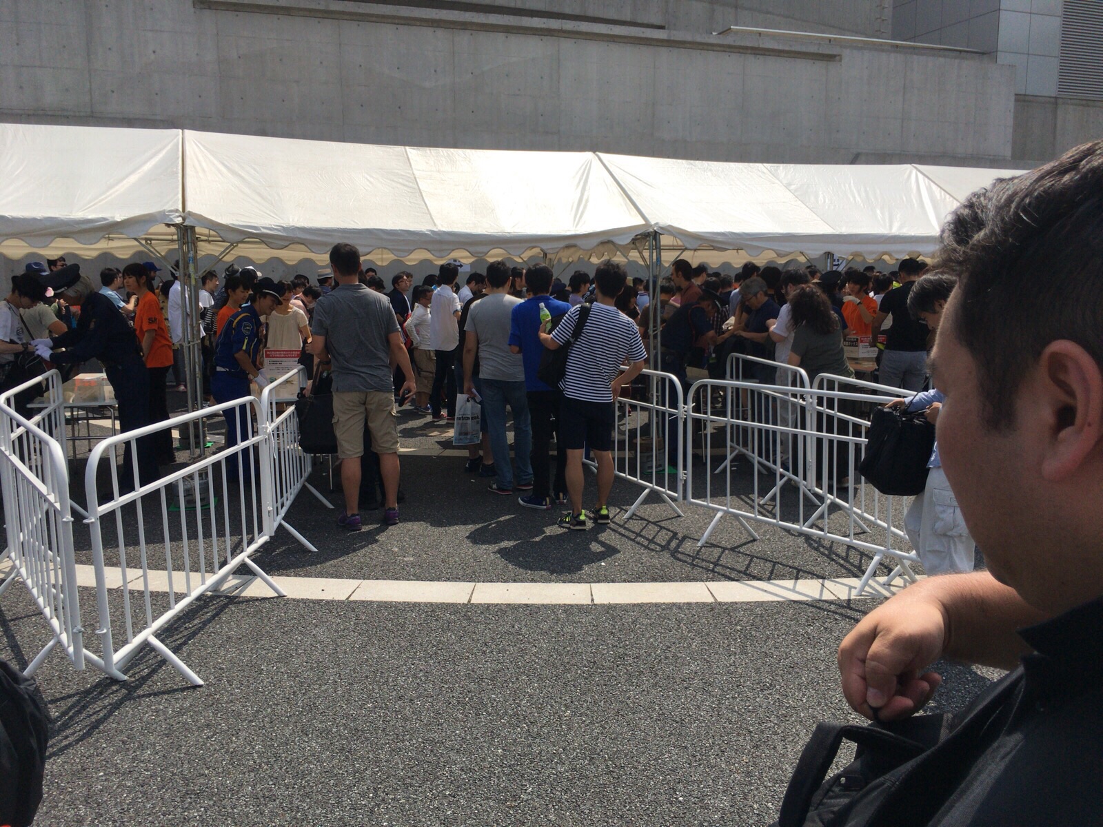 会場前で手荷物検査!