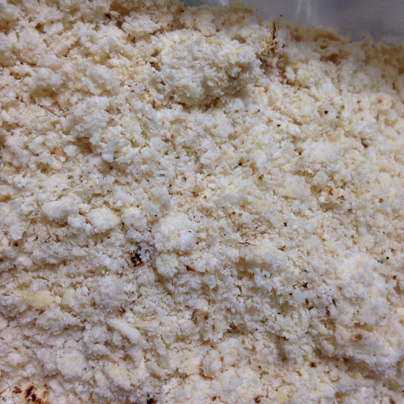モコモコしているこの白いのは、 おからをフライパンでから炒りにしたものです。oji