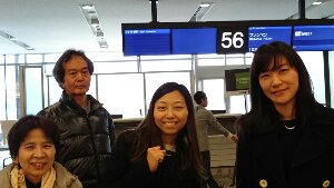 後ろの青い看板の文字に注目! 初めて乗る「プノンペン」行き、直行便です! 成田組 Megumi