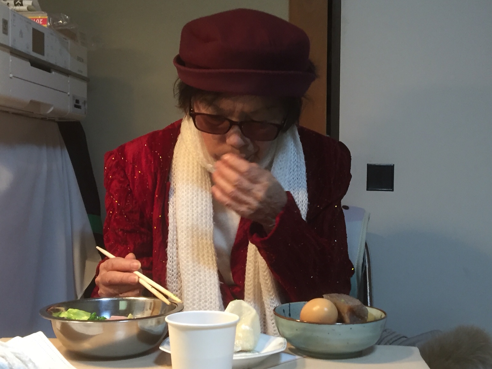 おでんとサラダとお餅。 もちろん、おでんの卵は お父さんの飼ってるコッコから。 美味しいです。 岡山 村上ゼ
