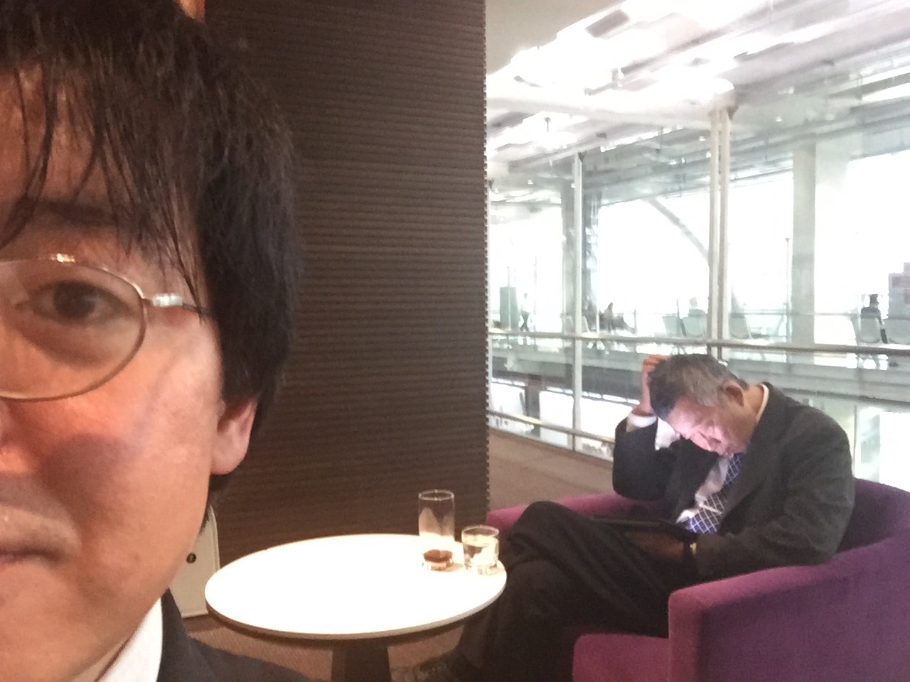 空港のラウンジに入っています。小腹が落ち着きました。恵みを感謝します。 秋元さんはインターネットを確認中のようです。神様ありがとうございます😊 村上ゼ