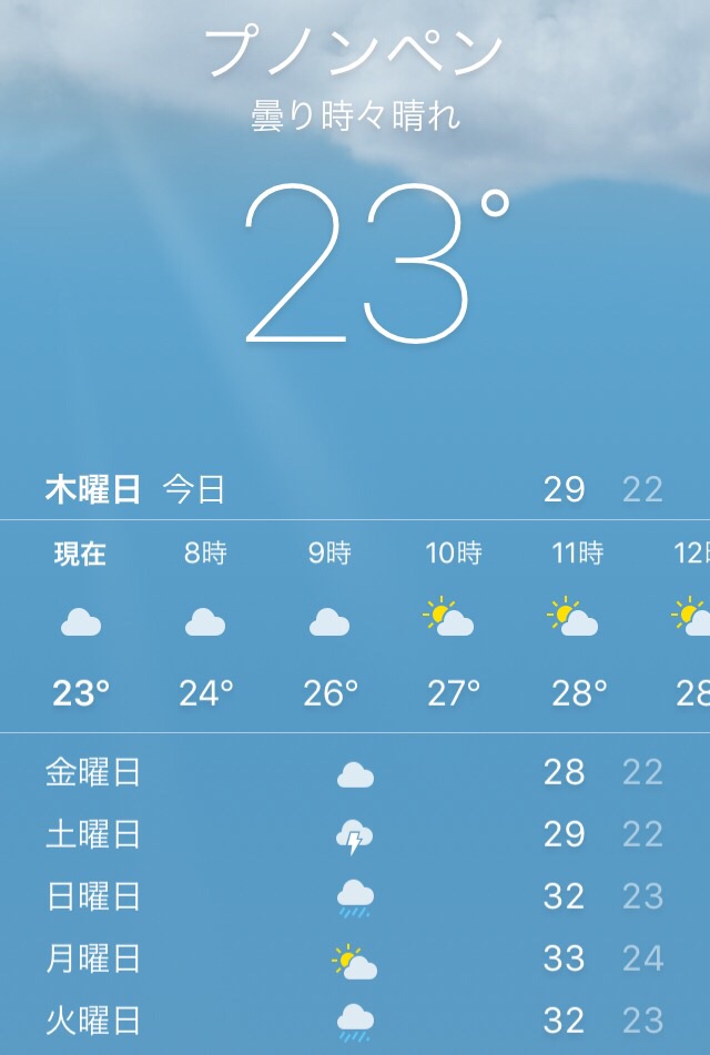 今朝のプノンペンの気温です。 Imai
