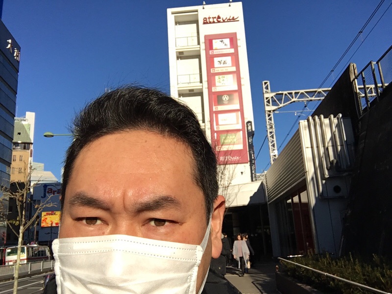 五反田に到着! まぶしくて目つきが鋭い!