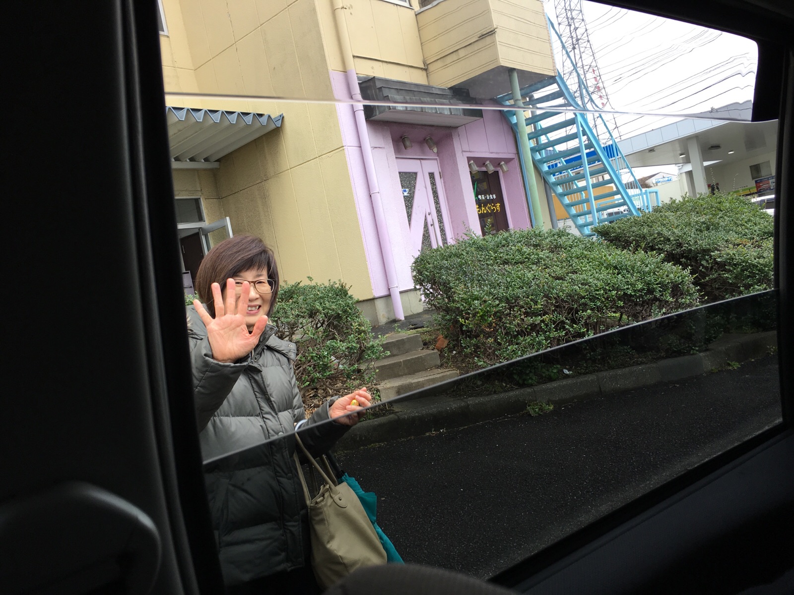 小淵さんをバス停まで乗せて来ました。