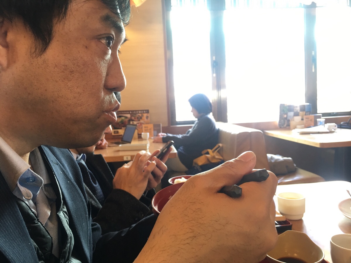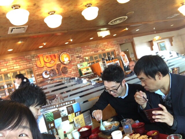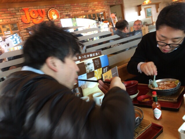ダビデ君とヒサさんはとり天定食。 いっぱい食べます! 九州ツアー、これからだし…