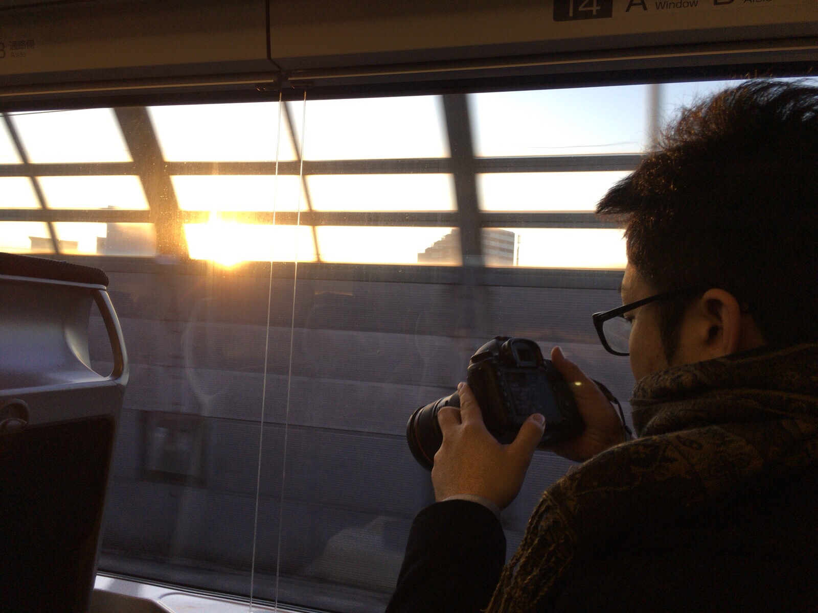 スカイライナーのってます。 朝日が差し込んできています。 きれいです!