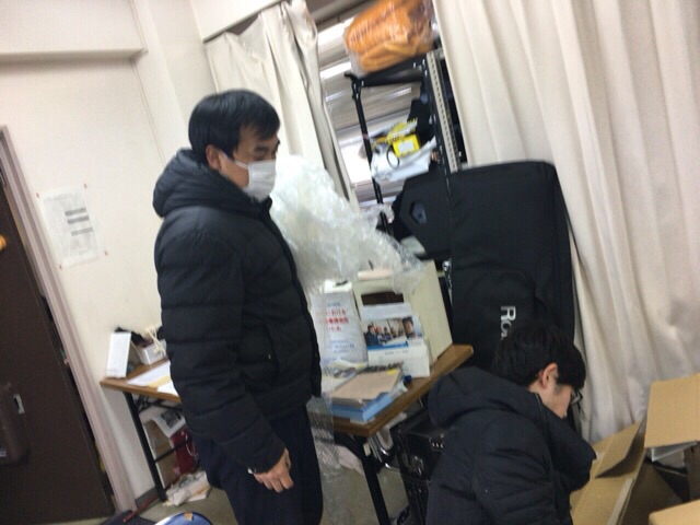 ロビーでは、中高生が映像の為に、何か作ってます。