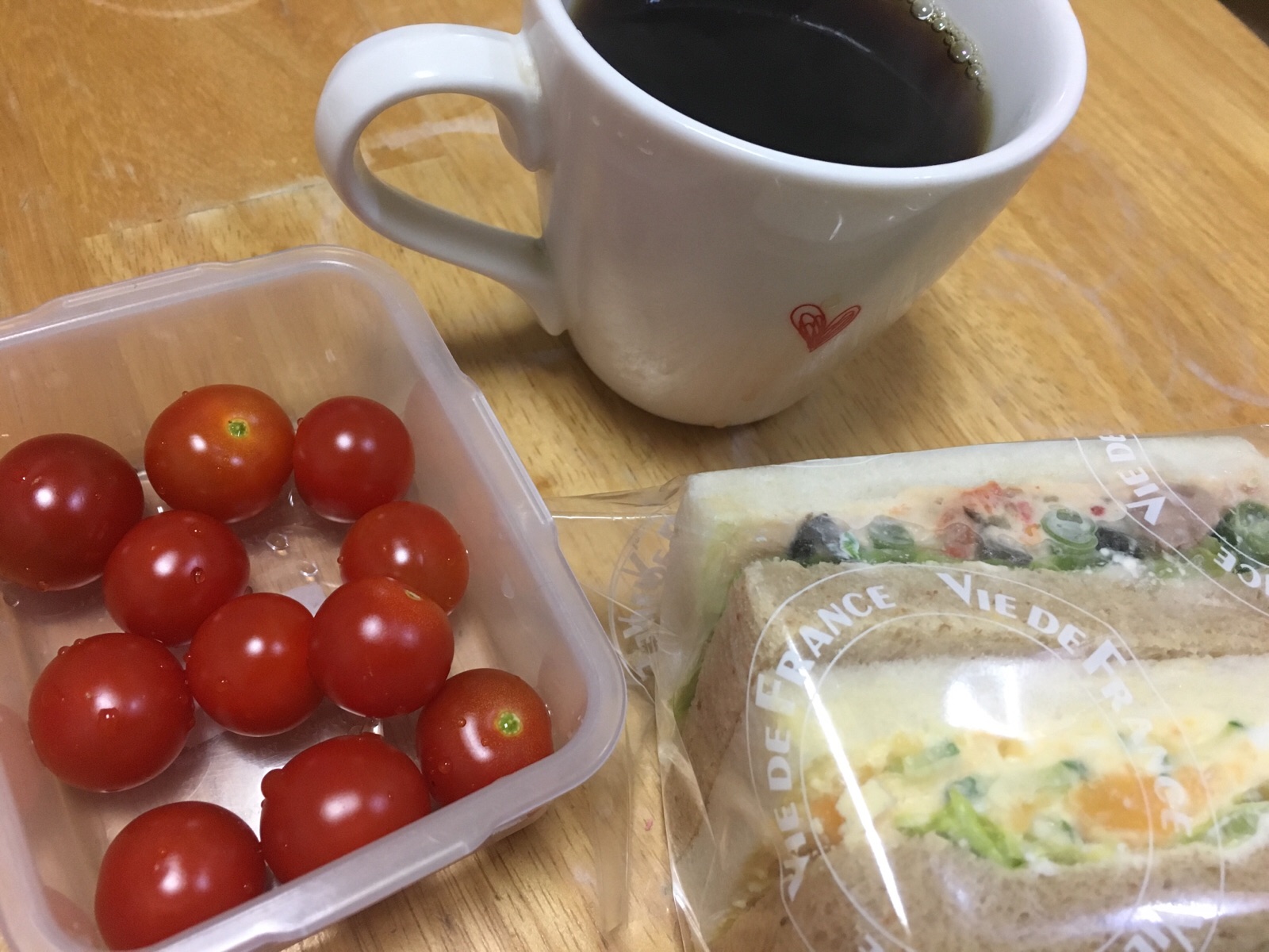 お昼はサンドイッチとトマトとコーヒーです。 トマトは九州、熊本産です。 Kayano