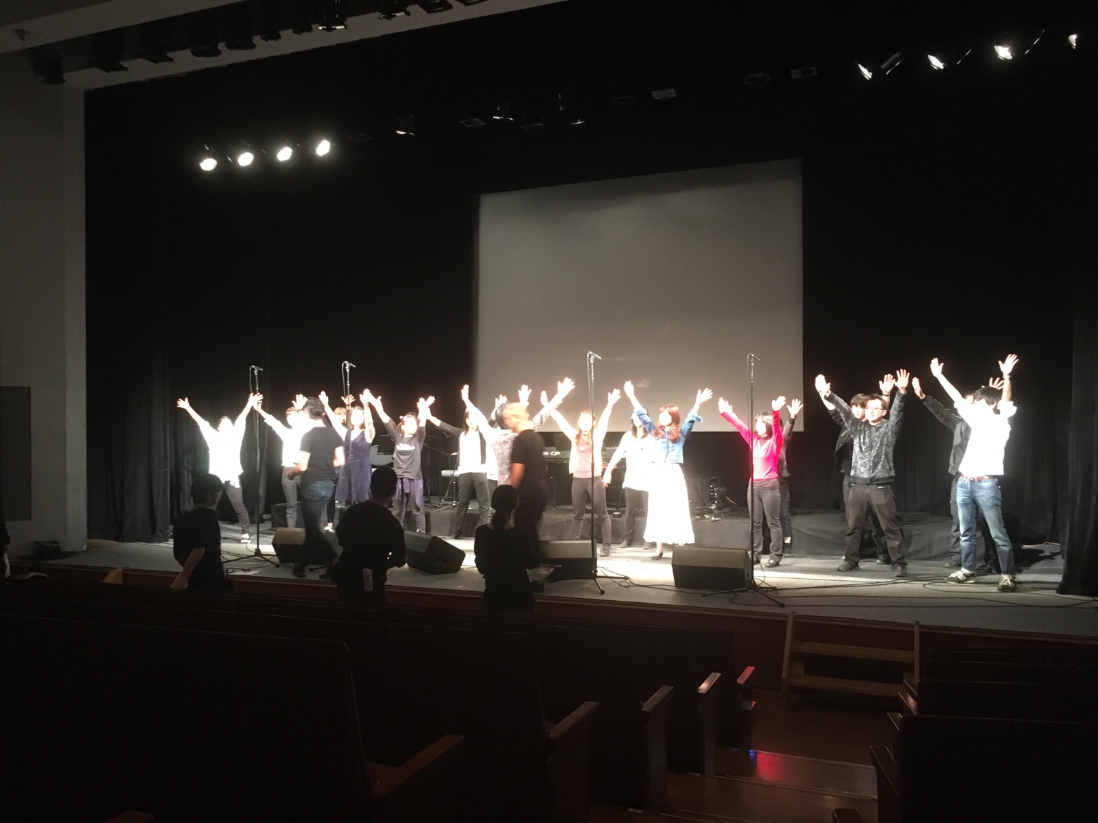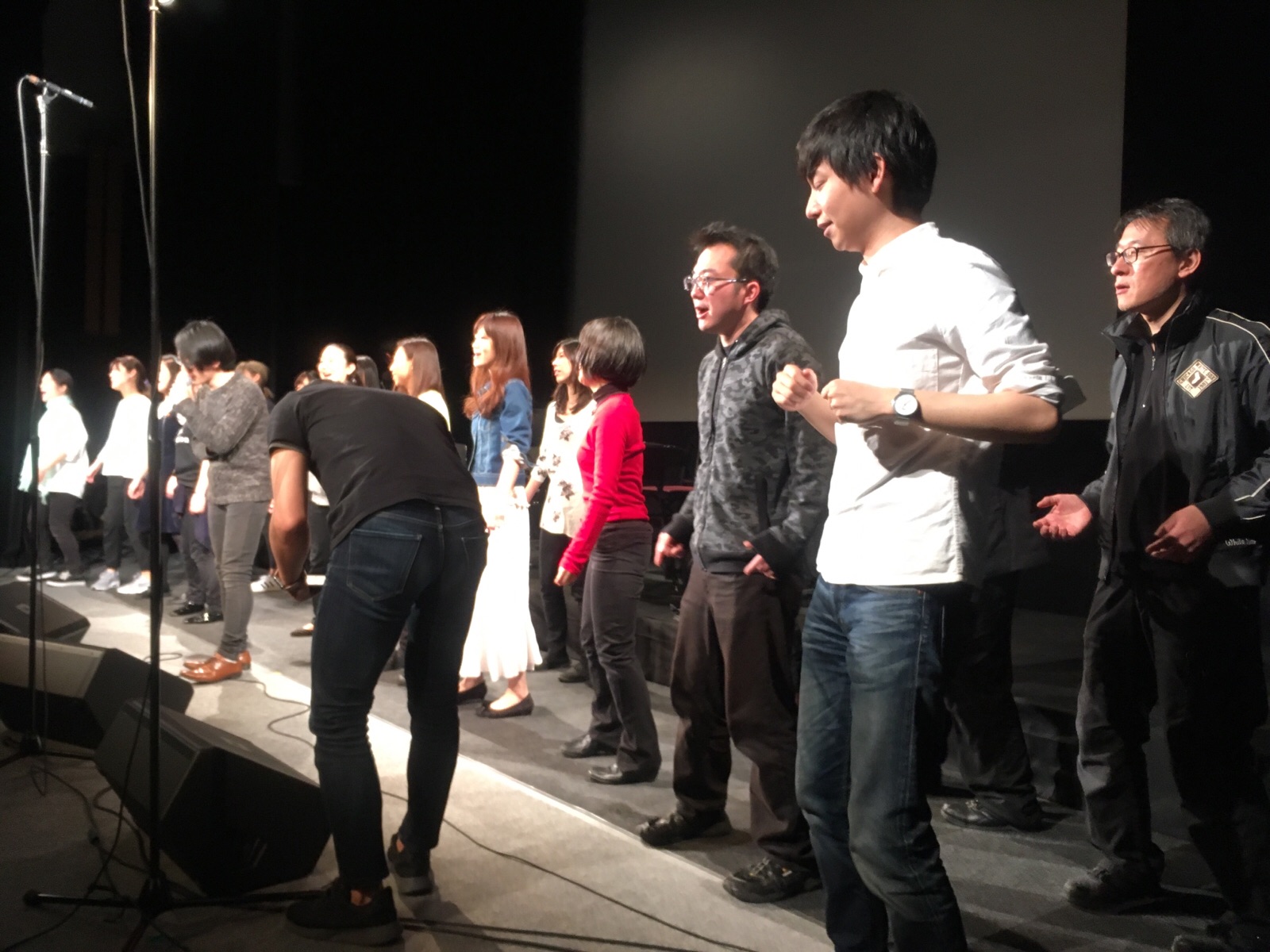 舞台裏に3人さん、打ち合わせでもしているのでしょうか!