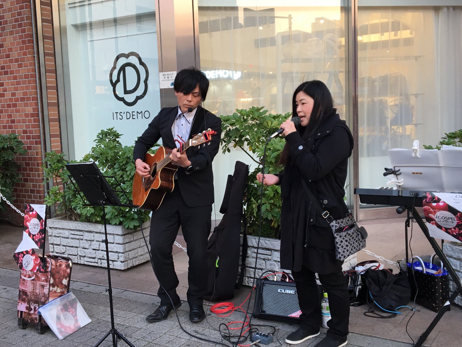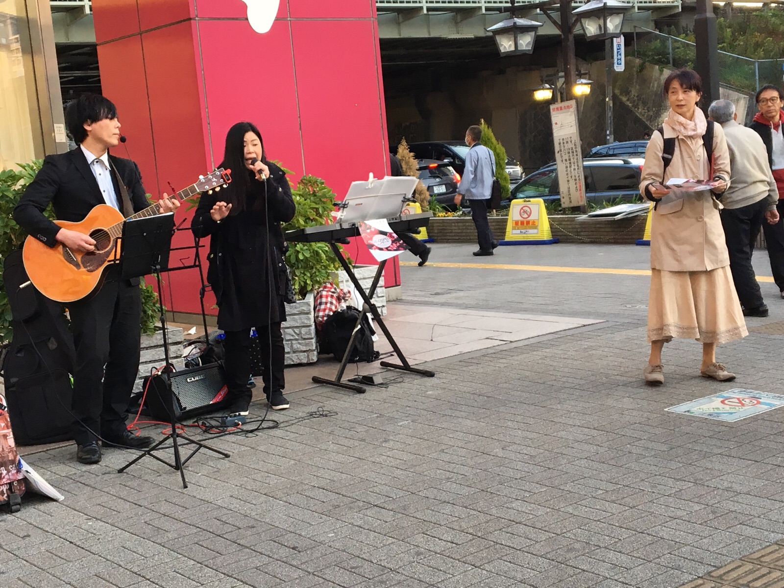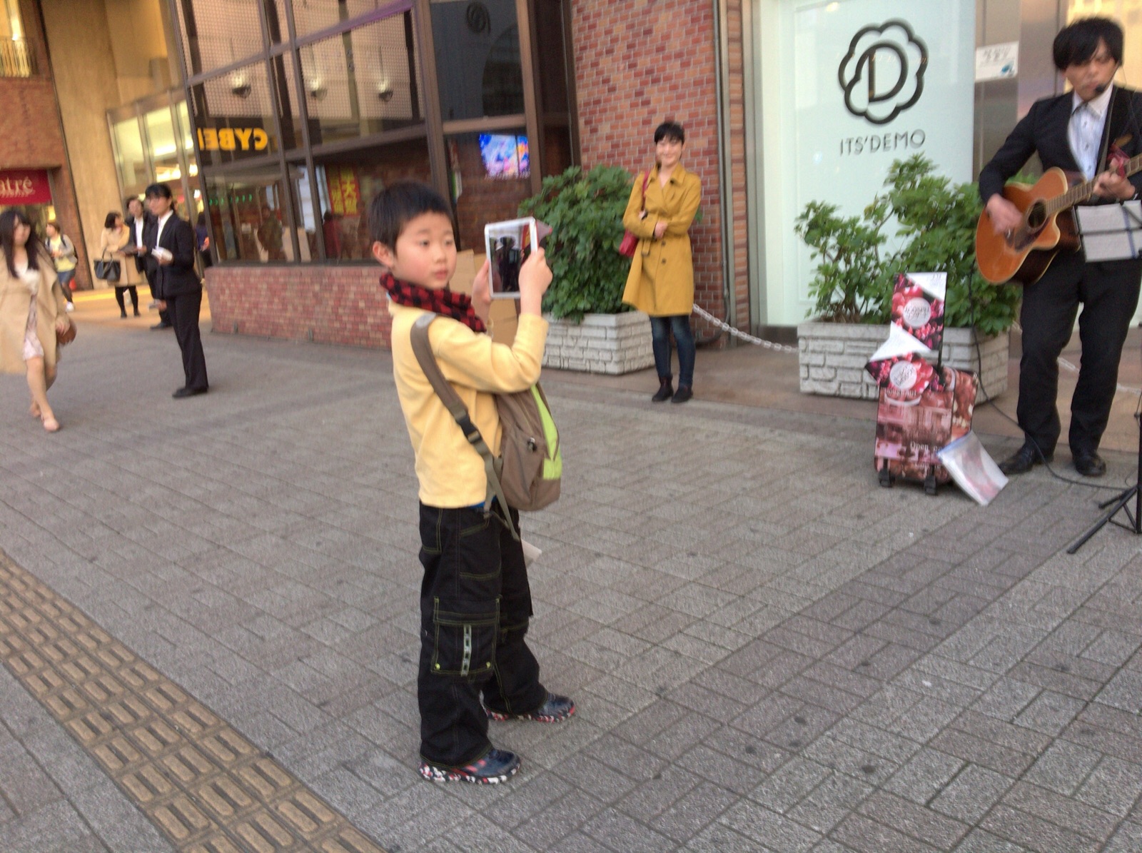 引き寄せられる、ゆうとくん♪踊りたいかな、歌いたいかな(^^) 宣伝路上ライブ