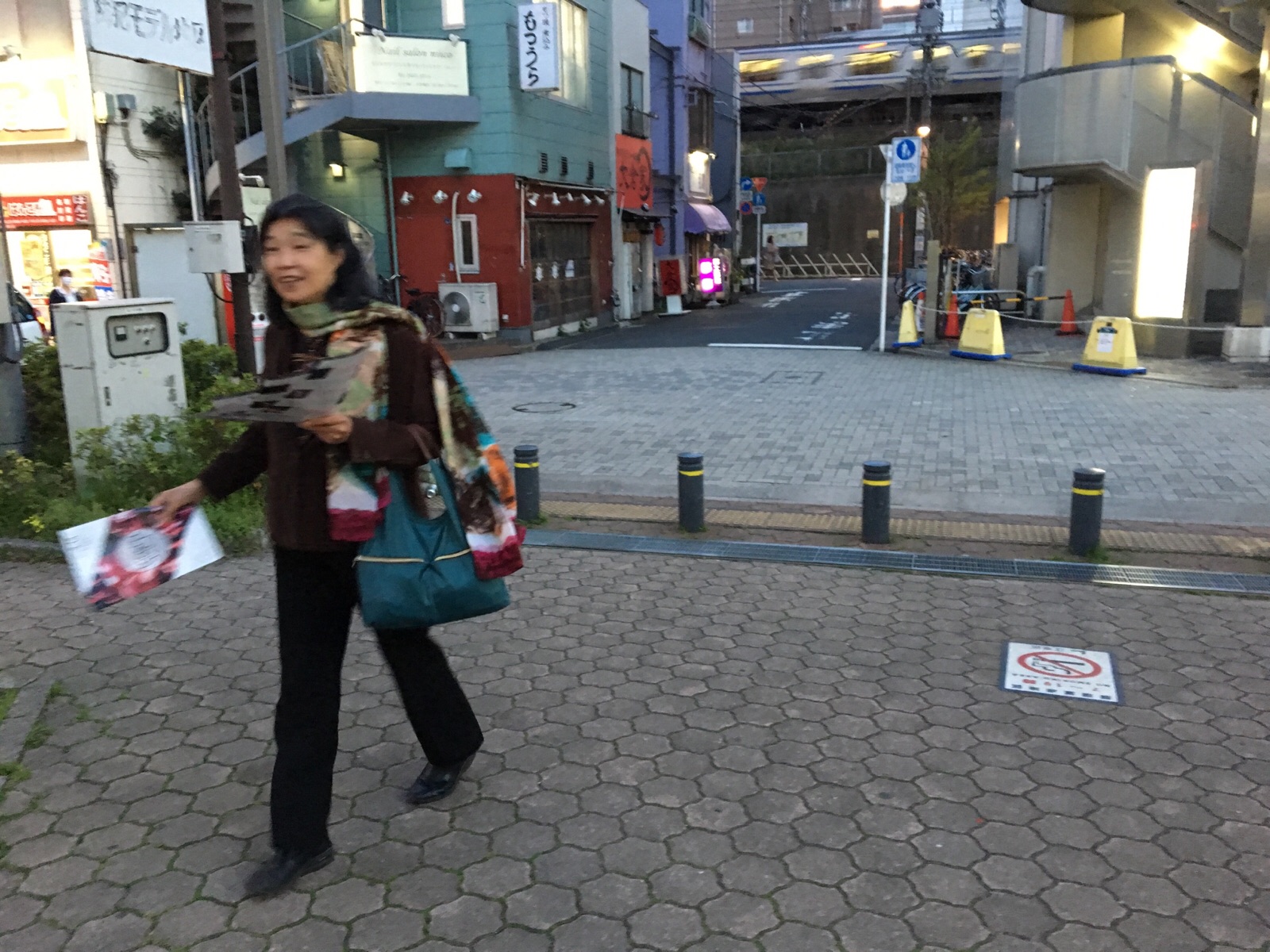 宣伝中です!立ち止まり聞いてくださる方々も。