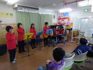久しぶりでしたが、以前と違って静かに座って聴いていたので、嬉しい驚き!やすらぎの歌 風のひびき集からと「アンパンマンのマーチ」や「世界に一つだけの花」を交えて9曲はあっという間に終わり、アンコールに応えて♪Keep your head high♪を歌うことになり子供たちもスタッフも全員で立ち上がって踊りつつ楽しく終わりました。喜びが伝わってきて「また来てね!」と手を振り合いながら帰路に着きました。栄光を主に! FRH教会