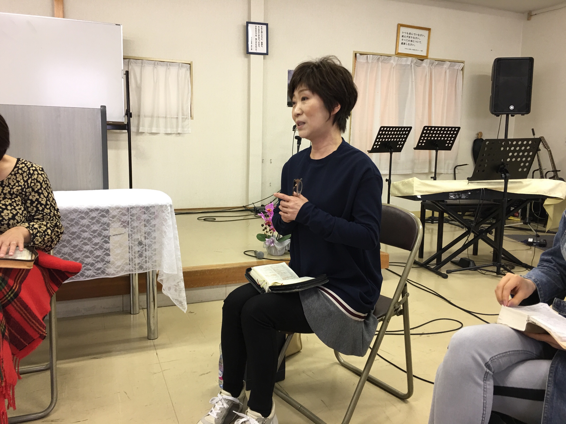 水曜祈祷会が行われています。今日は、早苗さんが賛美を導き、証し・メッセージをされています。 四日市 Chikumi