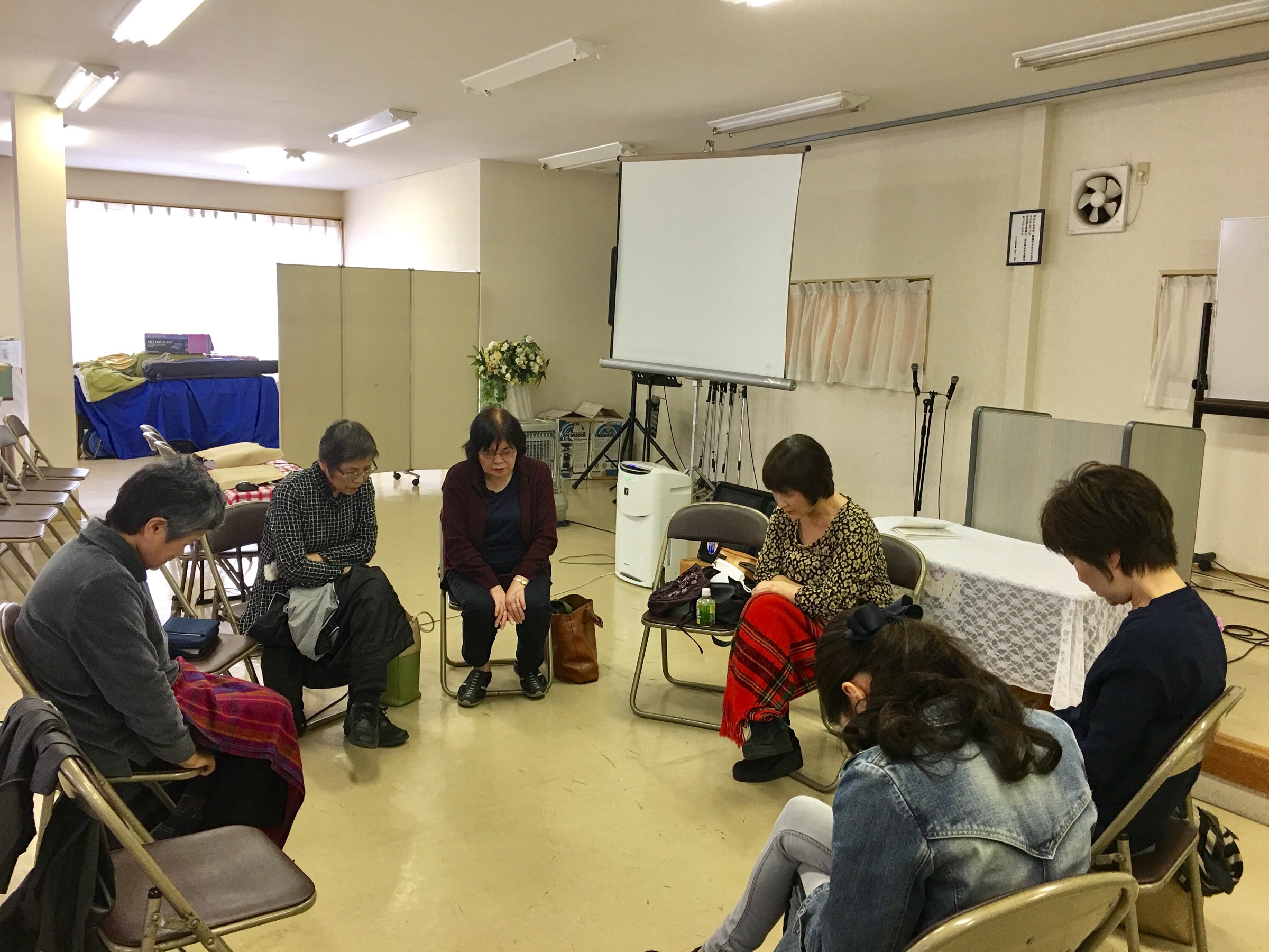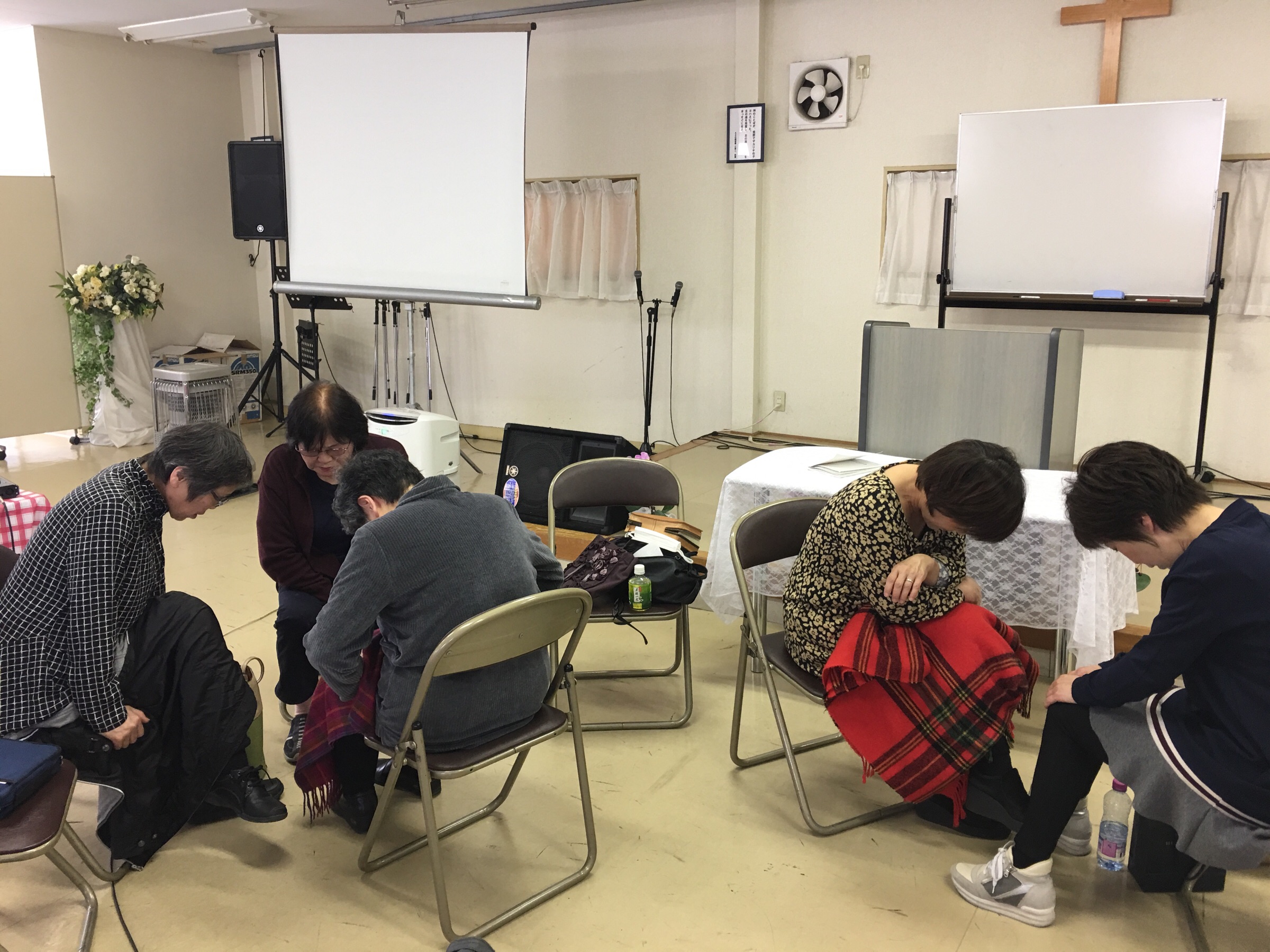 2、3人に分かれて、それぞれの為のお祈りをしています。 四日市 Chikumi