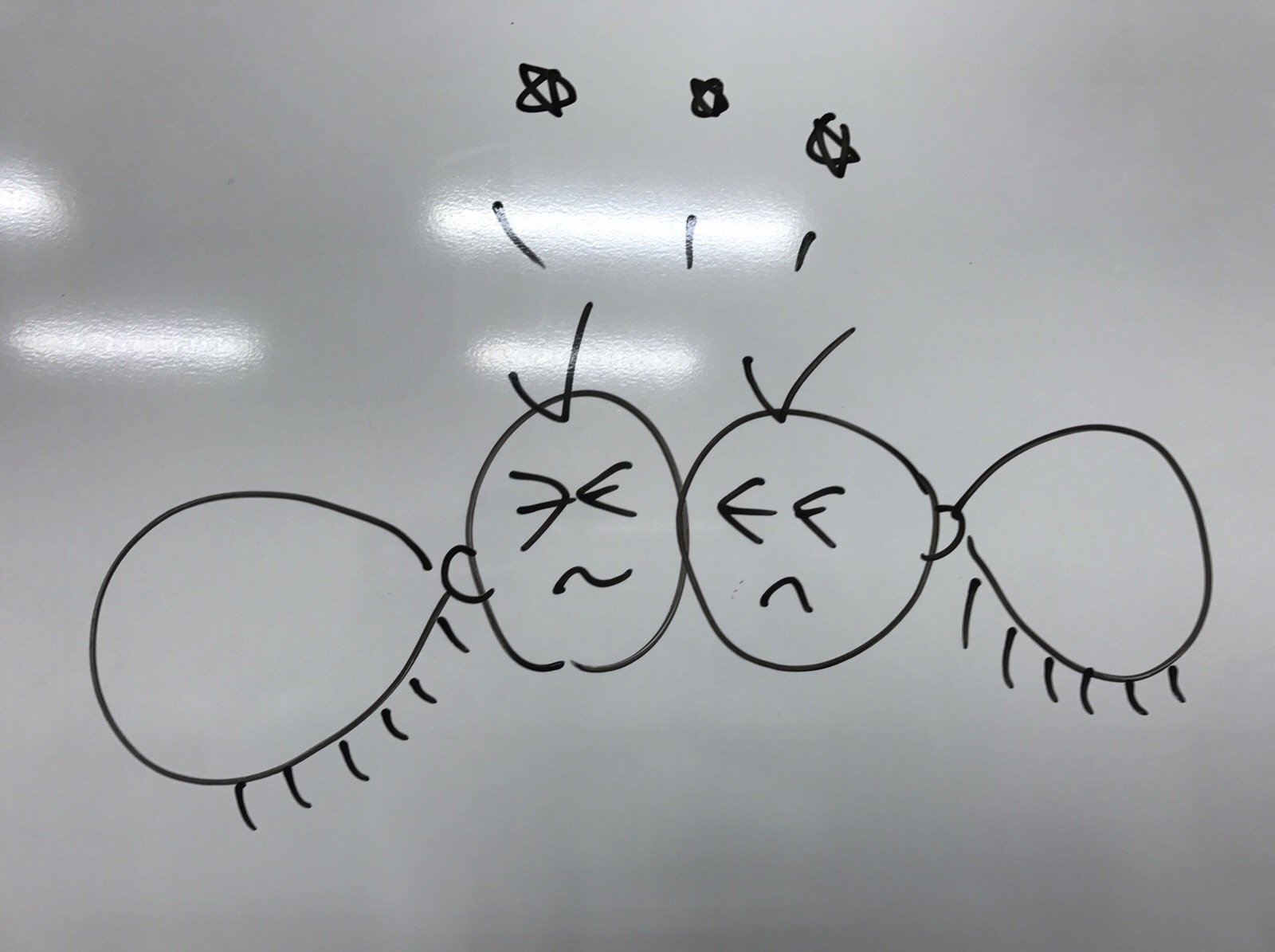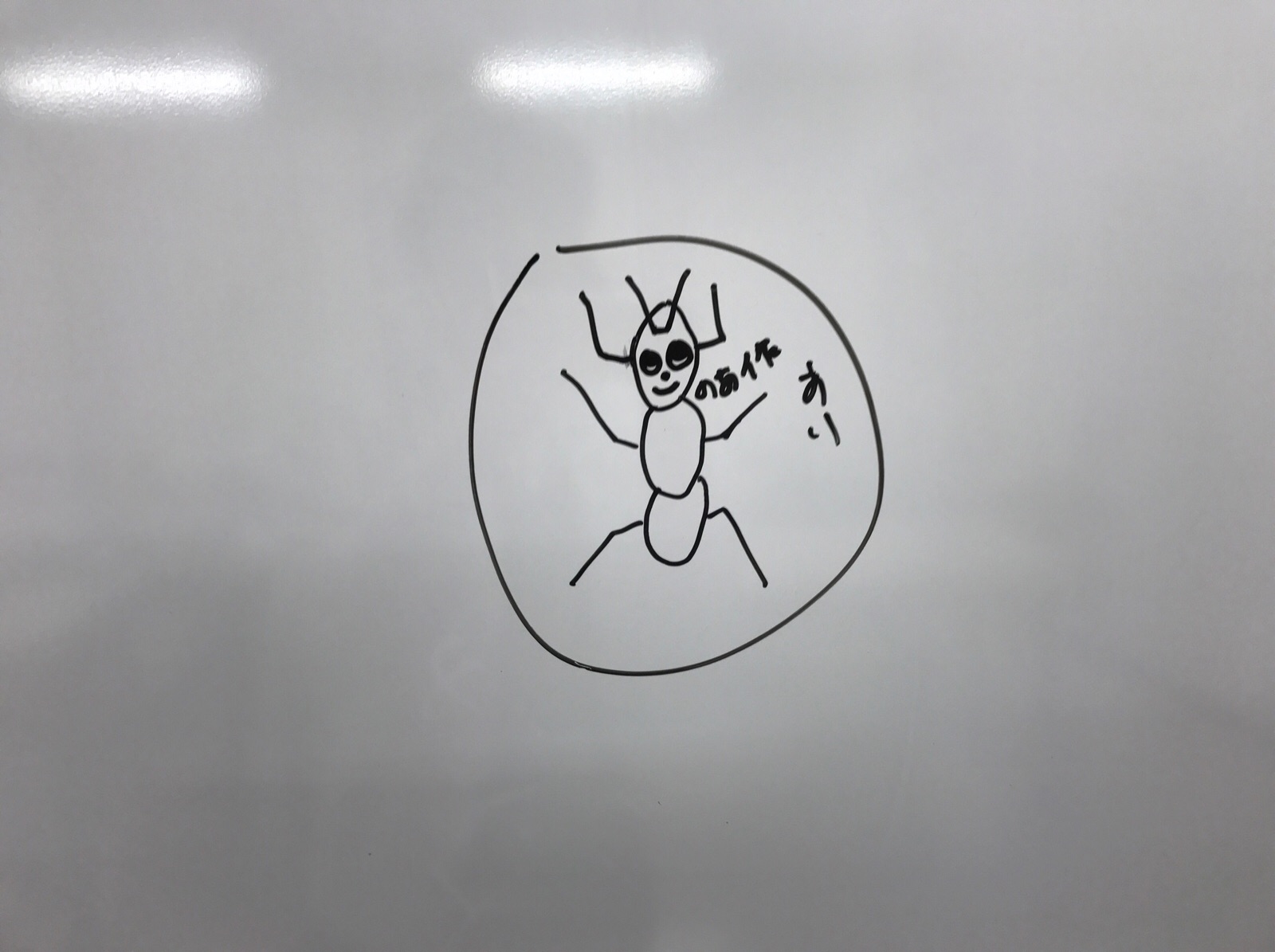ノアくん作と、3枚目は私作のアリ!「おつかいありさん」の歌を歌うのに描いてみました。職場では「先生がアリ描いた!!」と大喜びでしたが、ノアくんの方が本格的でうまい^_^ 福島 みゆき