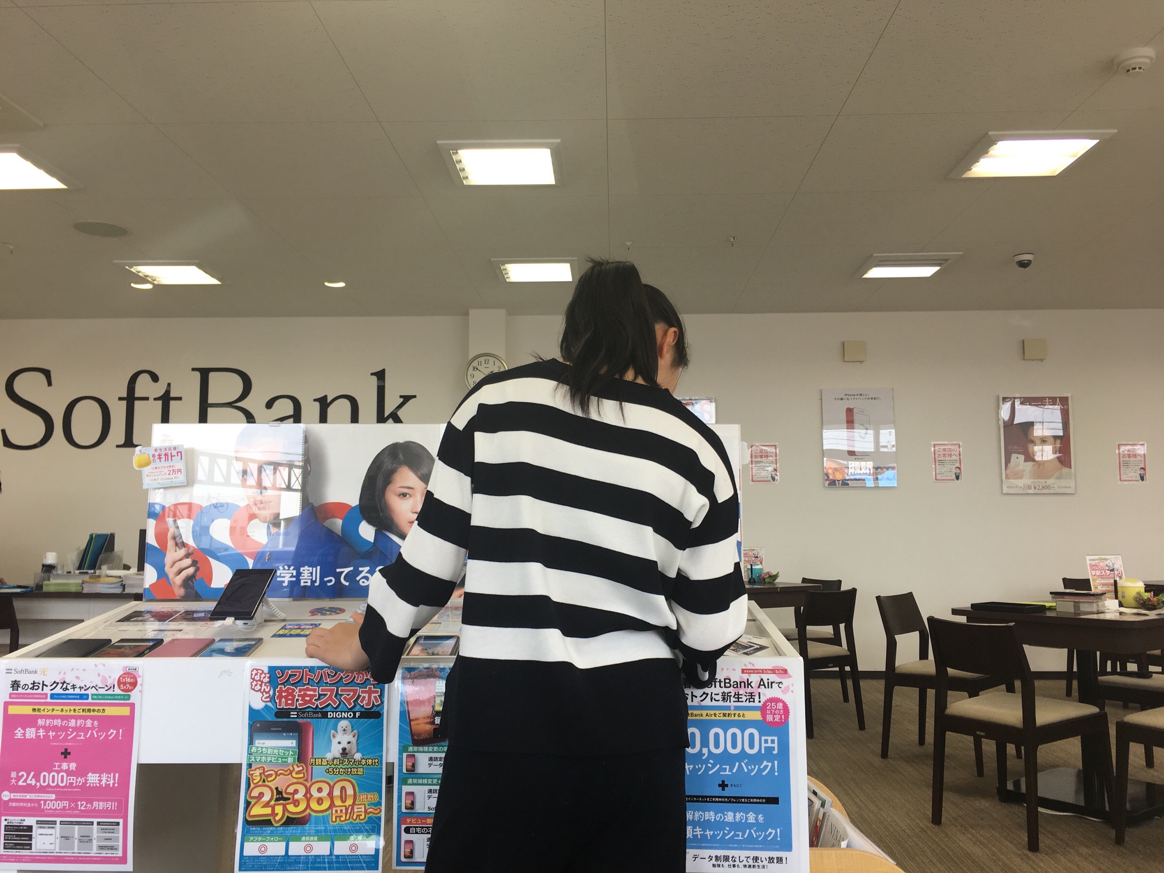 娘のiPhoneのカメラが使えなくなったので、ソフトバンクに来ています。ゴールデンウィーク前の平日ですが、けっこう混んでいます^_^ 四日市 Chikumi