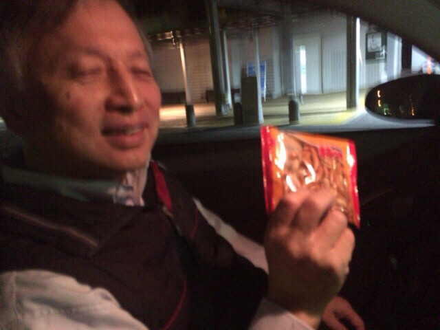 車の友?の「柿の種」をいただいちゃいましたー 本人は、眠け覚まし?と言っておりますが…? 運転替わるから…食べて寝て下さ〜い!