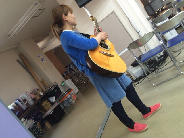 由美ちゃんがギターの練習していました〜♪ ブルーのカーディガンの色キレイですね〜♪ amagai