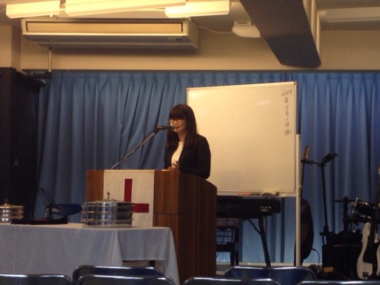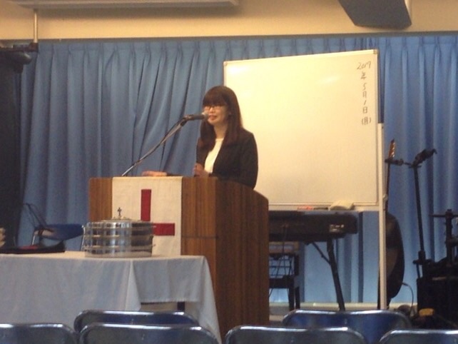 創世記12章1、2節から、メッセージを語る高橋さん。