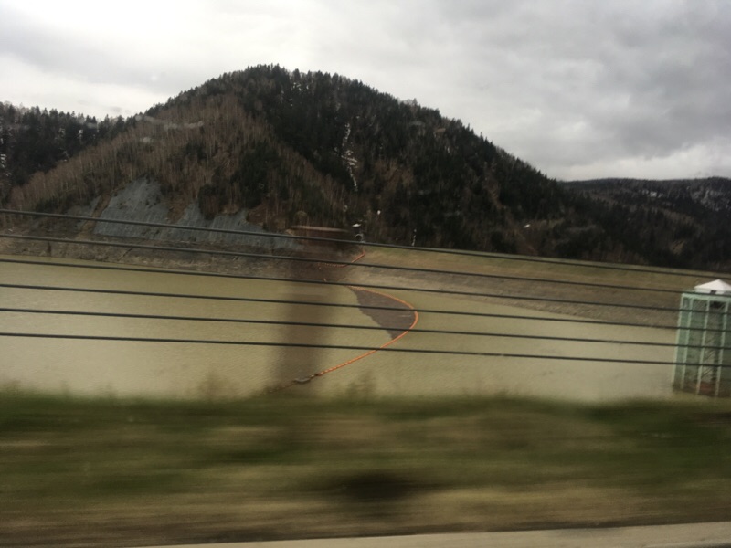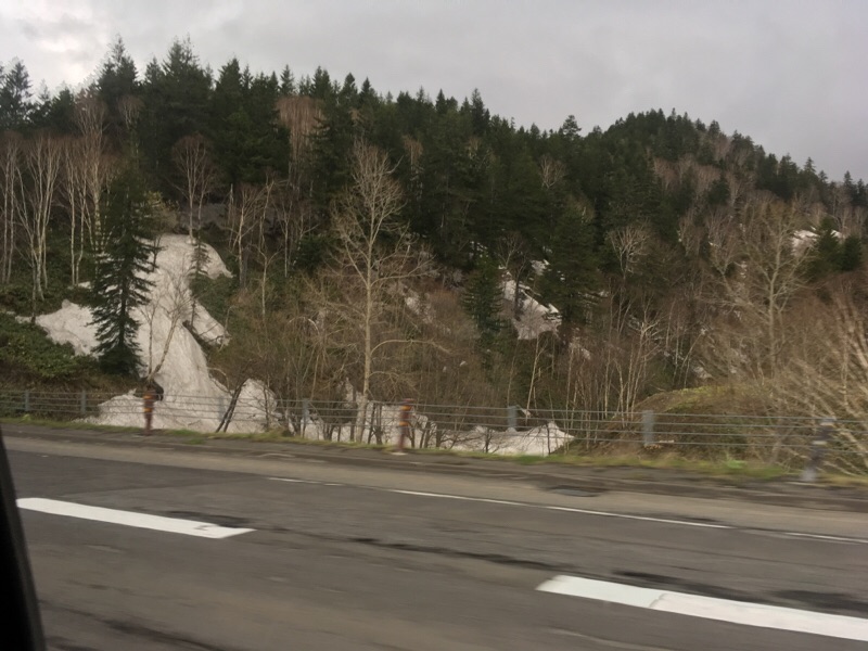 石北峠。 山肌には、まだ雪が残っています。 北エルサレムK