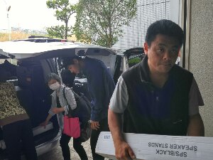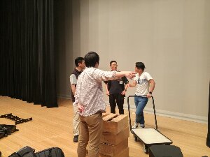 まずは、会場の方々と打ち合わせしながら、設営スタートです。
