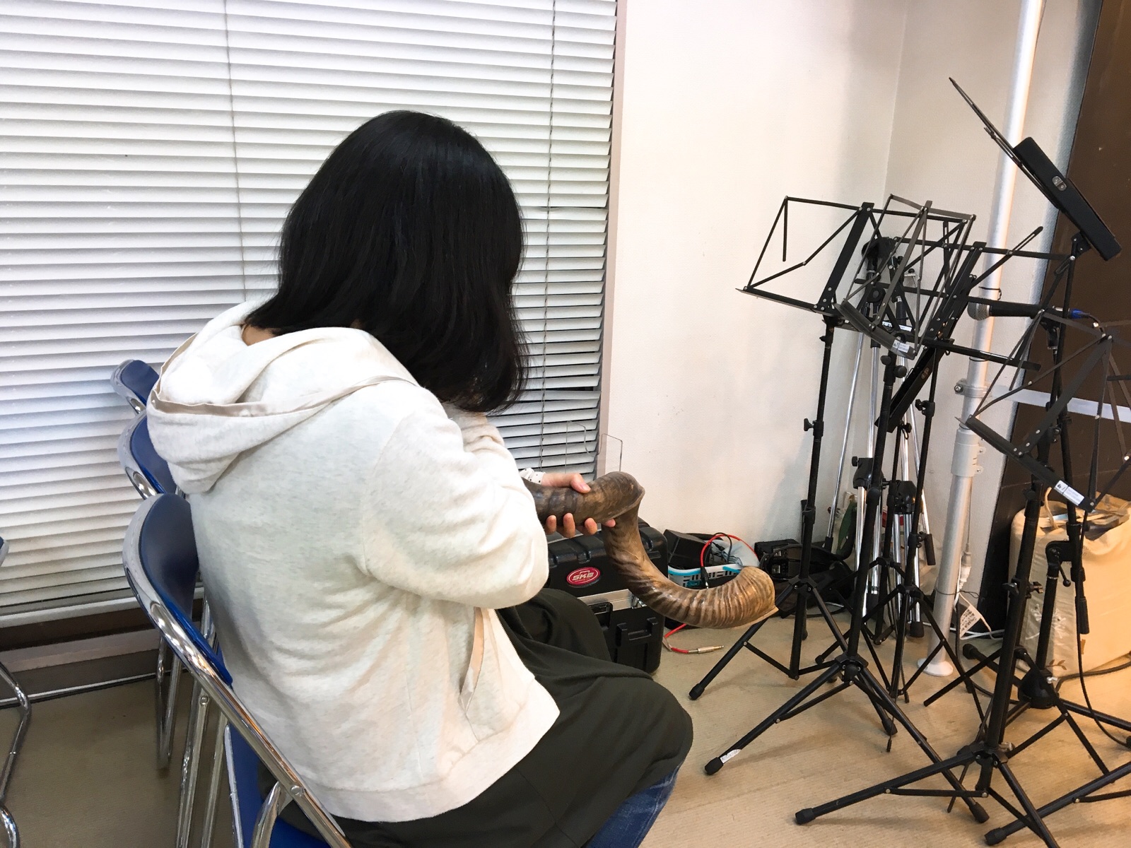 角笛の練習をする栗ちゃん。 Yui