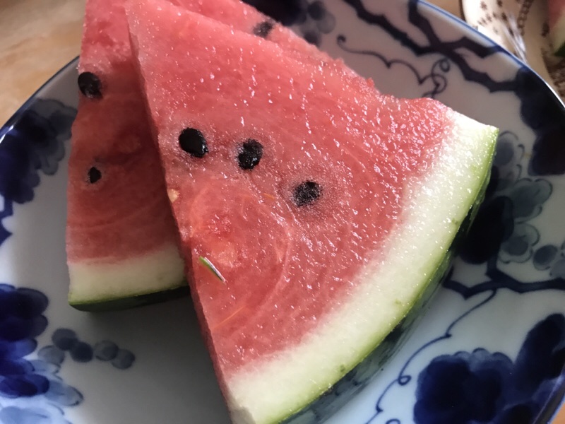 これから今日のためお祈りタイム。スイカを用意しました。今年はスイカたべたたべた。ラベイユゆみ